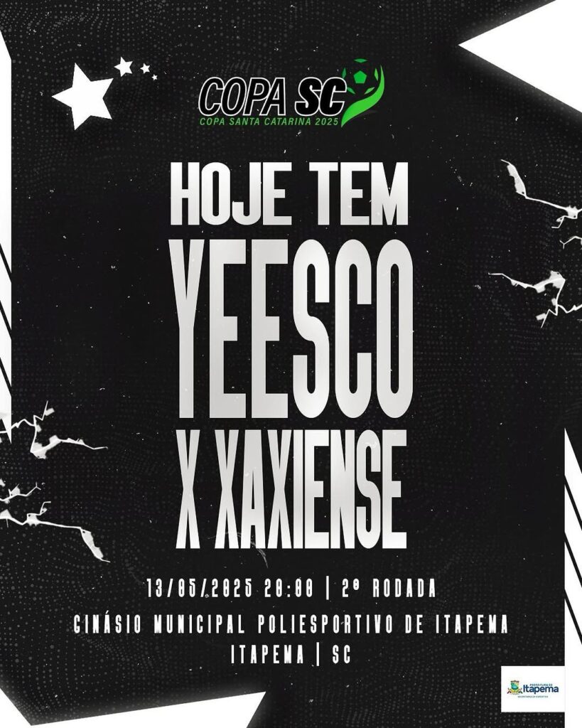 Itapema será palco de mais um grande jogo da Copa Santa Catarina de Futsal nesta terça-feira (13/05). A equipe da YEESCO, que utiliza a cidade como base oficial durante a competição, enfrenta a Xaxiense a partir das 20h, no Ginásio Municipal Victor José de Carvalho, no bairro Alto São Bento. A entrada é gratuita, e toda a comunidade está convidada a prestigiar o espetáculo do futsal profissional.