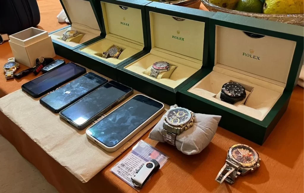 Em Itapema, a Polícia Civil cumpriu mandados de busca e apreensão em um dos endereços do principal líder da quadrilha, que residia no município. Durante as diligências, foram apreendidos diversos bens de alto valor, incluindo: