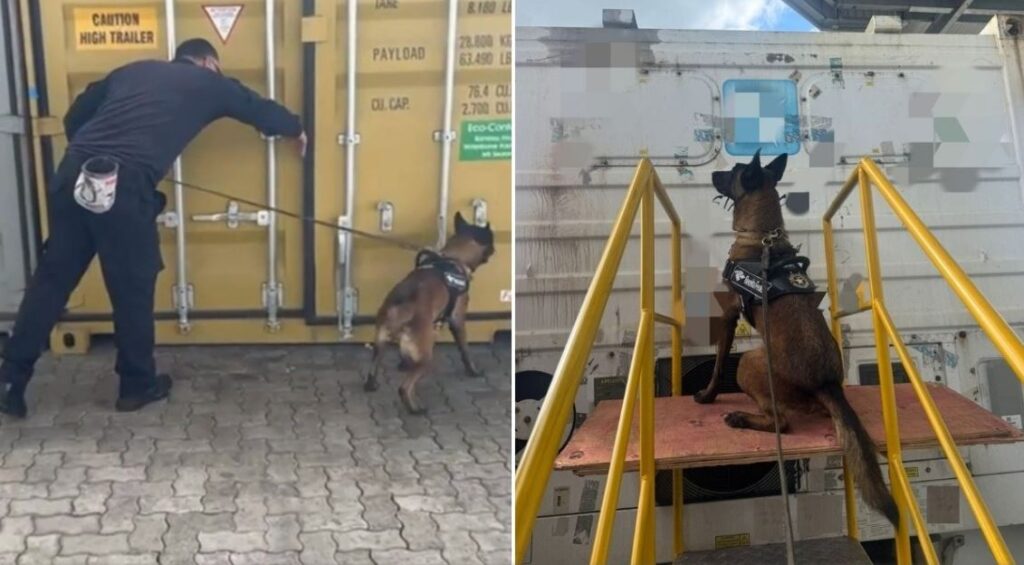 Cão farejador encontra carga de cocaína avaliada em R$ 4 milhões no porto de Itapoá