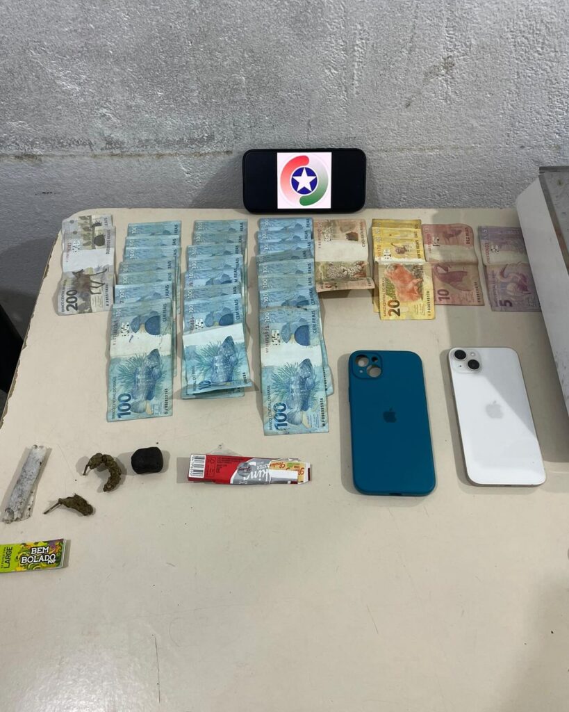 Na vistoria, foram encontrados no porta-malas uma mala com cerca de 10 peças de roupas (casacos e calças) e R$ 2.300,00 em espécie. No interior, havia um iPhone, cerca de 5 gramas de maconha e mais R$ 35,00 em dinheiro.