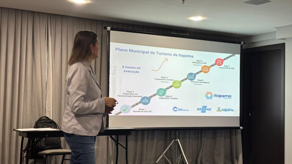 Durante a reunião, a equipe técnica da Prefeitura apresentou o Plano Municipal de Turismo, elaborado ao longo de oito meses com apoio do Sebrae. O documento reúne diagnóstico, diretrizes estratégicas e propostas estruturadas para o fortalecimento do turismo em Itapema a médio e longo prazo.