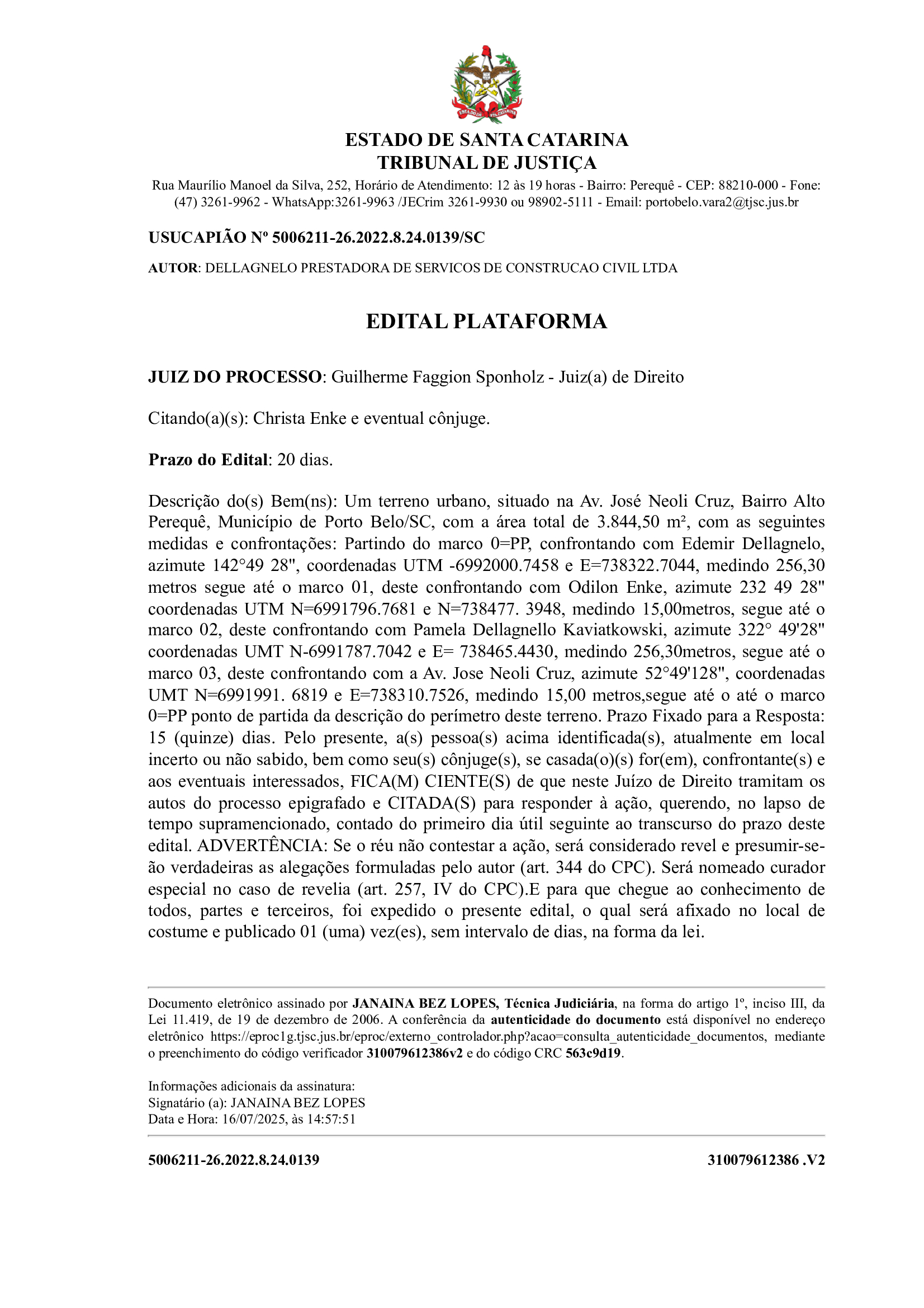 Publicações legais EDITAL PLATAFORMA Agosto 6, 2025 Tags: dellagnelo, edital Continue Reading Previous EDITAL PLATAFORMANext SINDICOMERCIO: ASSEMBLEIA GERAL EXTRAORDINÁRIA – EDITAL DE CONVOCAÇÃO More Stories Publicações legais EDITAL PLATAFORMA Março 3, 2026 Publicações legais EDITAL PLATAFORMA Fevereiro 16, 2026 Destaques Porto Belo Publicações legais POLÍCIA CIVIL PRENDE CASAL E DESARTICULA PONTO DE TRÁFICO NO BAIRRO PEREQUÊ Fevereiro 7, 2026 Deixe um comentário Cancelar respostaO seu endereço de email não será publicado. Campos obrigatórios marcados com *Comentário * Nome * Email * Site Guardar o meu nome, email e site neste navegador para a próxima vez que eu comentar.