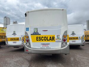 Cada ônibus conta com cintos de segurança em todos os assentos, acessibilidade com plataforma elevatória para cadeirantes, ventilação adequada e sinalização obrigatória, além de estarem regularizados para o transporte escolar.