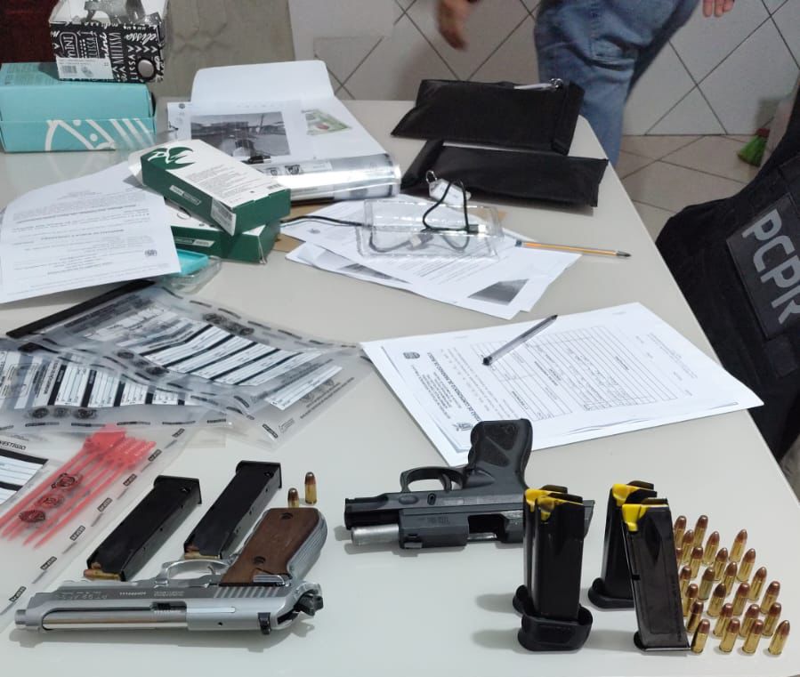 Durante as diligências, foram apreendidas duas pistolas e diversas munições em posse dos suspeitos.