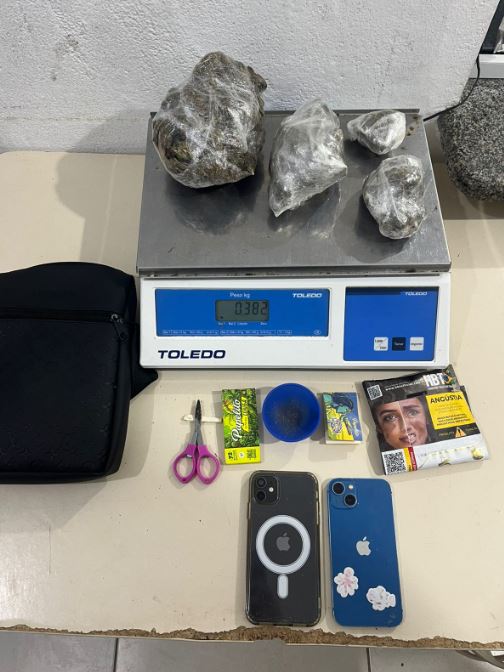 Durante uma barreira policial, os militares deram ordem de parada a um veículo Honda WR-V. No decorrer da fiscalização, os policiais localizaran em sua posse uma bolsa contendo 0,382 gramas de skunk, fracionada em invólucros plásticos.