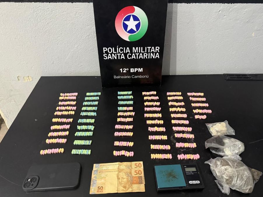 POLÍCIA MILITAR PRENDEU AUTOR DE TRÁFICO DE ENTORPECENTES E APREENDEU ECTASY E OUTRAS DROGAS, NO CENTRO DE BALNEÁRIO CAMBORIÚ