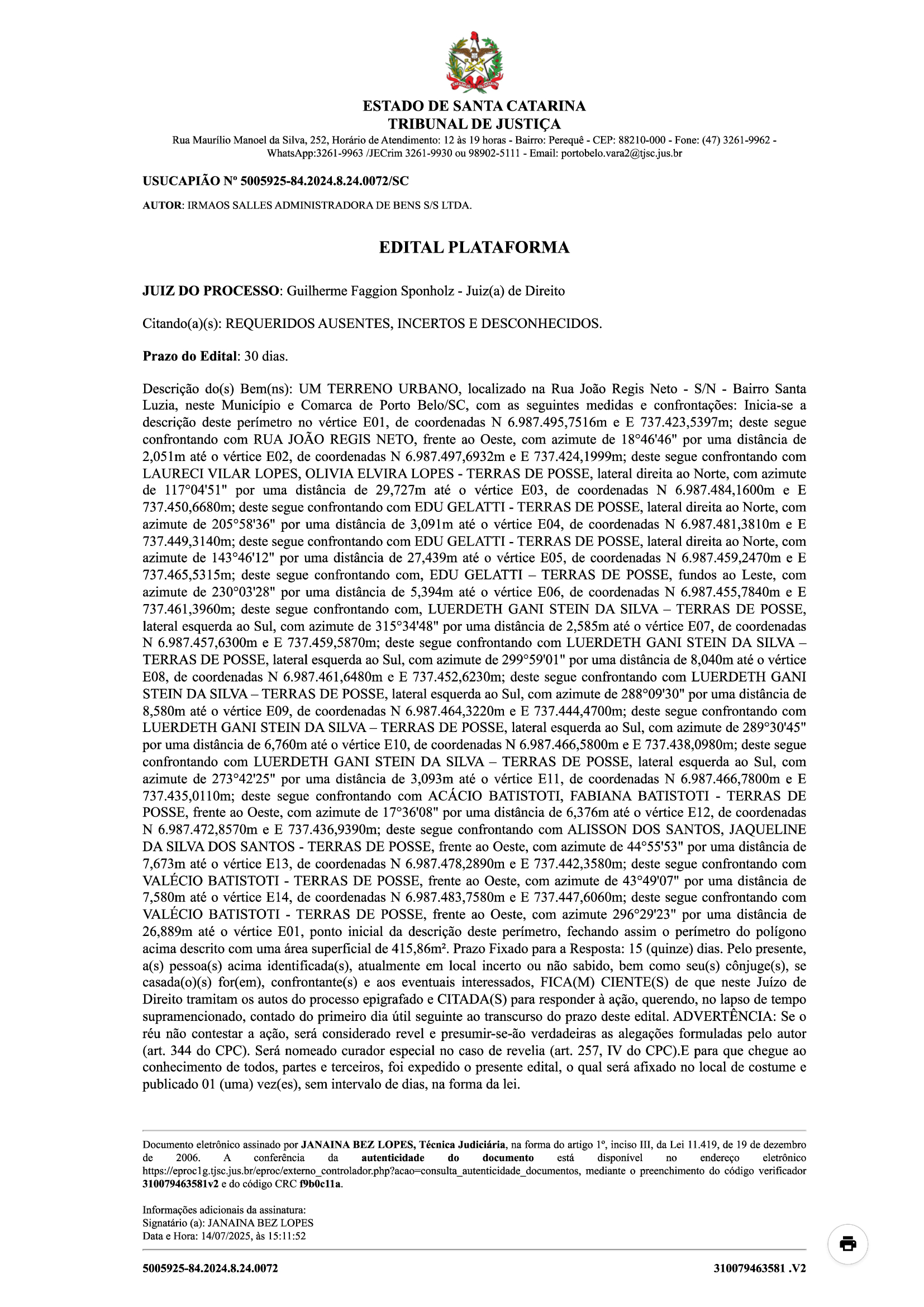 Publicações legais EDITAL PLATAFORMA Setembro 2, 2025 xr:d:DAF2rg2gZ7k:3,j:1443815648359024139,t:23121114 Tags: edital, irmaos salles, leo Continue Reading Previous EDITAL PLATAFORMANext EDITAL PLATAFORMA More Stories Publicações legais EDITAL PLATAFORMA Março 3, 2026 Publicações legais EDITAL PLATAFORMA Fevereiro 16, 2026 Destaques Porto Belo Publicações legais POLÍCIA CIVIL PRENDE CASAL E DESARTICULA PONTO DE TRÁFICO NO BAIRRO PEREQUÊ Fevereiro 7, 2026 Deixe um comentário Cancelar respostaO seu endereço de email não será publicado. Campos obrigatórios marcados com *Comentário * Nome * Email * Site Guardar o meu nome, email e site neste navegador para a próxima vez que eu comentar.