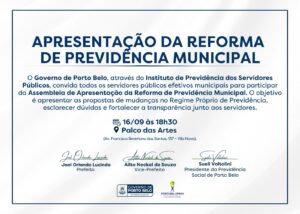 Destaques Porto Belo Região PORTOBELOPREV convida servidores públicos para Assembleia de Apresentação da Reforma Previdenciária Municipal Setembro 9, 2025