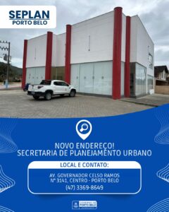 Destaques Porto Belo Região Secretaria de Planejamento Urbano de Porto Belo está em novo endereço Outubro 3, 2025
