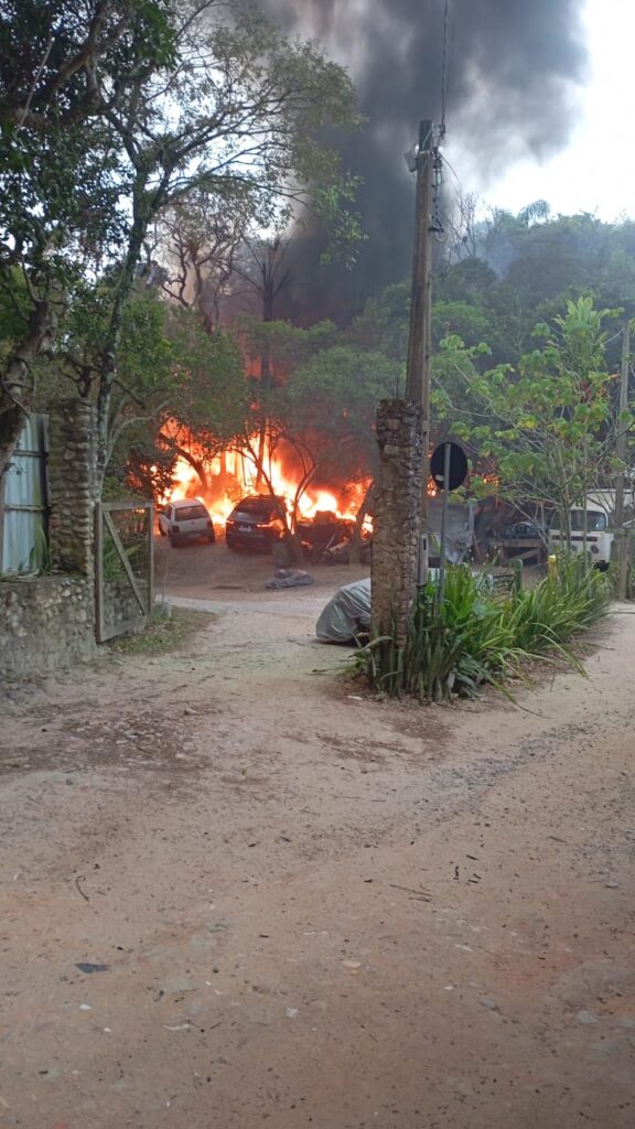Incêndio destrói rancho e atinge veículos em Bombinhas
