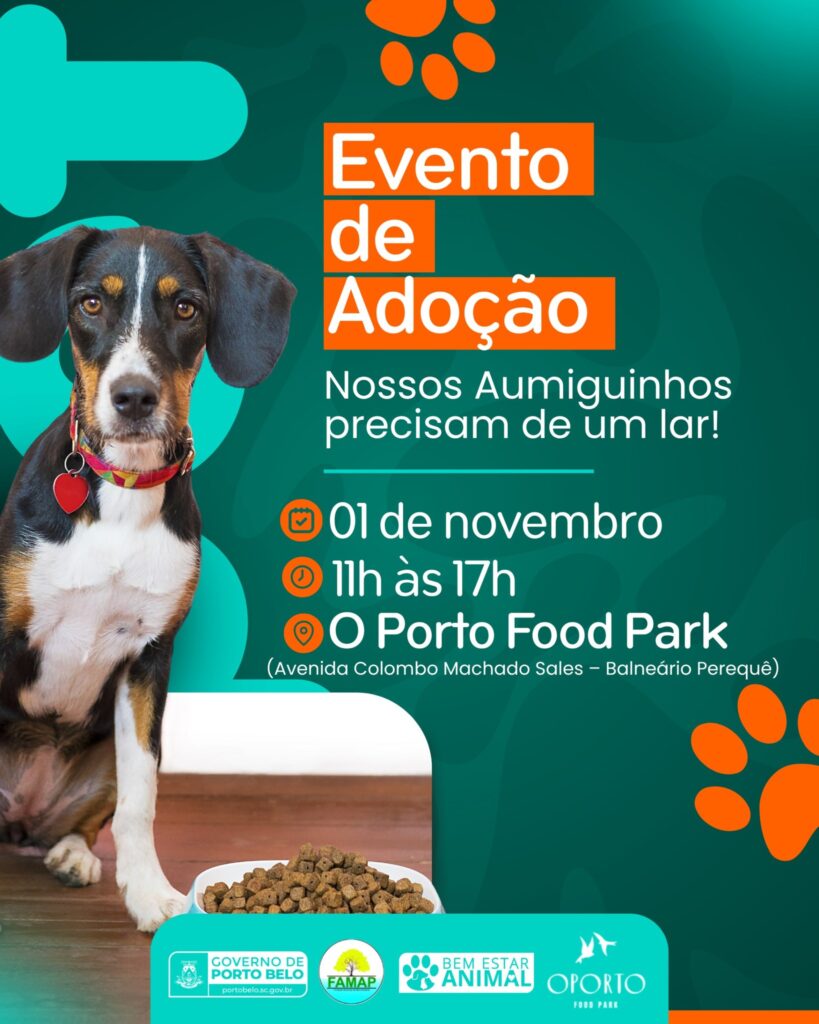 O Governo de Porto Belo, por meio da Fundação Municipal do Meio Ambiente (FAMAP) e do Centro de Bem-Estar Animal, realiza neste sábado, 1º de novembro, mais uma edição do Evento de Adoção, uma ação especial voltada para encontrar lares amorosos e responsáveis para cães e gatos que aguardam uma nova chance de vida.