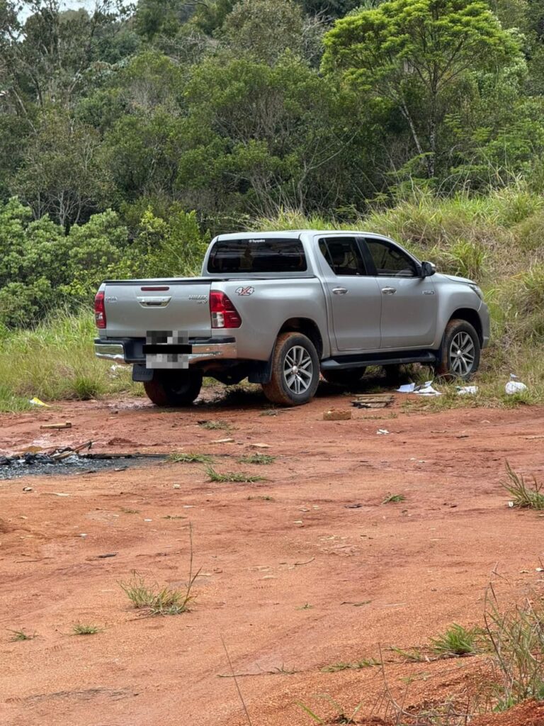 Na casa de um dos envolvidos foi localizado mais um módulo, chaves virgens de outros veículos, uma motocicleta, também com a placa adulterada e registro de Furto/ Roubo. Na residência ainda foi encontrado um fragmento de um documento impresso referente a outra Hilux furtada no dia 24 de outubro de 2025.