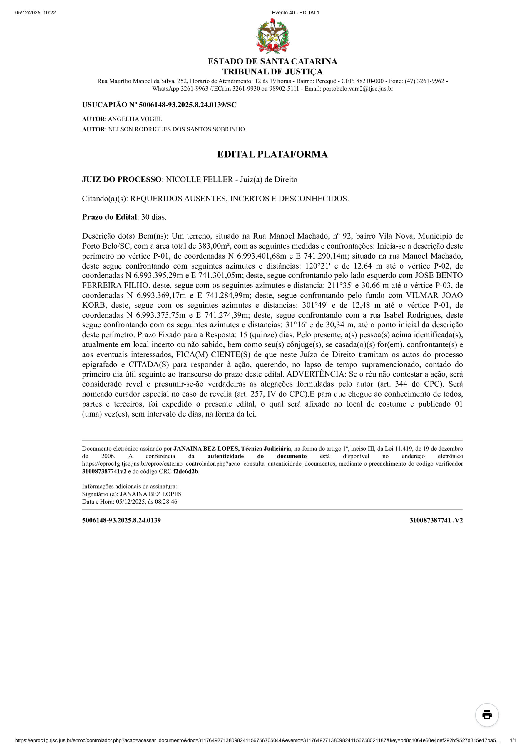 Publicações legais EDITAL PLATAFORMA Dezembro 23, 2025 xr:d:DAF2rg2gZ7k:3,j:1443815648359024139,t:23121114 Tags: angelita, edital, nelson Continue Reading Previous EDITAL PLATAFORMANext AMOP: EDITAL DE CONVOCAÇÃO DA ASSEMBLEIA GERAL EXTRAORDINÁRIA More Stories Publicações legais EDITAL PLATAFORMA Março 3, 2026 Publicações legais EDITAL PLATAFORMA Fevereiro 16, 2026 Destaques Porto Belo Publicações legais POLÍCIA CIVIL PRENDE CASAL E DESARTICULA PONTO DE TRÁFICO NO BAIRRO PEREQUÊ Fevereiro 7, 2026 Deixe um comentário Cancelar respostaO seu endereço de email não será publicado. Campos obrigatórios marcados com *Comentário * Nome * Email * Site Guardar o meu nome, email e site neste navegador para a próxima vez que eu comentar.