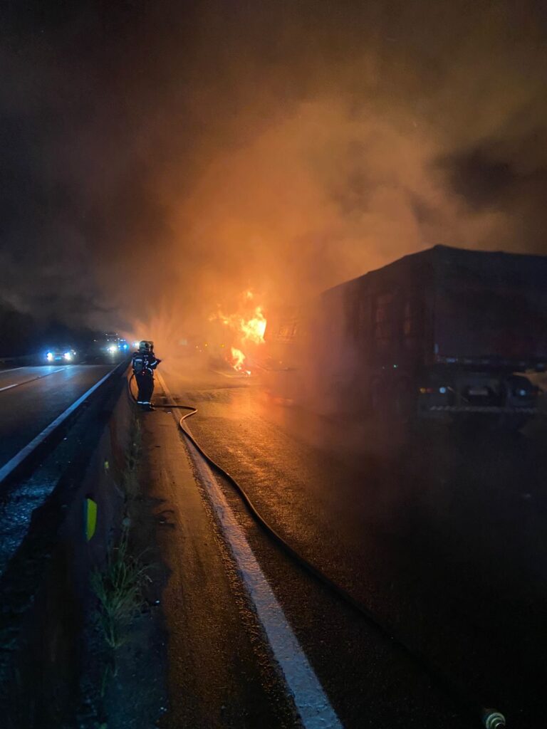 Na noite desta segunda-feira (19), por volta das 21h35, um grave sinistro de trânsito envolvendo duas carretas foi registrado em Tijucas. A colisão resultou em incêndio de grandes proporções nos compartimentos de carga dos veículos.
