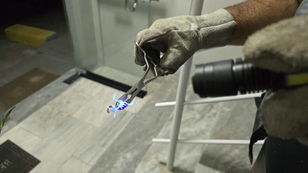 A equipe técnica se deslocou até o local para vistoria e, durante a inspeção, foi identificado que o local é um ponto com condições favoráveis à presença de escorpiões. Na ação, foi realizado o recolhimento e a higienização do ambiente, além de orientações aos moradores sobre os cuidados necessários para evitar novas ocorrências.