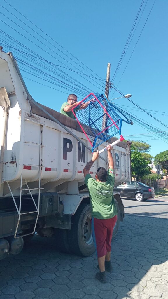 Prefeitura realiza operação para recolhimento de carrinhos de supermercado abandonados nas ruas de Porto Belo