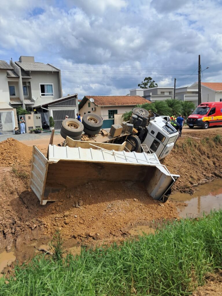 Canelinha – Um acidente envolvendo um caminhão da frota municipal de Canelinha mobilizou equipes de socorro na tarde desta terça-feira (17/03). O veículo tombou em uma vala na Rua Manoel Francisco Corrêa, na região central da cidade, por volta das 13h39.